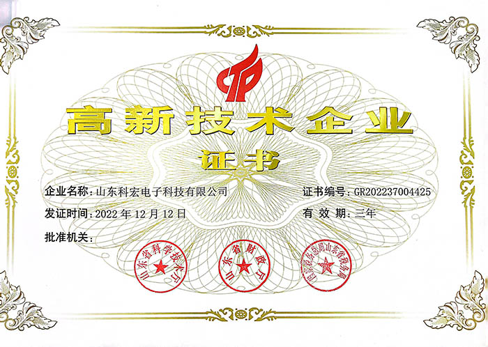 熱烈祝賀山東科宏電子科技有限公司榮獲高新技術企業(yè)稱號!